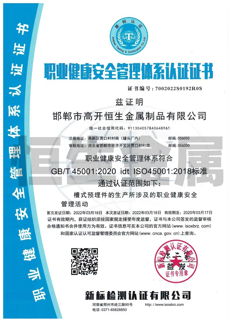 邯鄲市高開恒生金屬制品有限公司總部設(shè)在鋼城河北邯鄲,西鄰京廣線、東臨京深高速,地理位置優(yōu)越,交通比較便利。 我廠擁有多年生產(chǎn)預埋槽道的產(chǎn)品生產(chǎn)經(jīng)驗,專業(yè)生產(chǎn)鍍鋅防腐槽型預埋件系列產(chǎn)品,其中產(chǎn)品包括:高開恒生哈芬槽、哈芬槽鋼、預埋槽道、預埋滑槽、帶齒預埋槽鋼、槽式預埋件、工字鋼材料、C型槽材料配套的T型螺栓,也可根據(jù)客戶需求按圖訂做加工,產(chǎn)品廣泛應(yīng)用于隧道、城市軌道交通、地下綜合管廊、建筑幕墻施工工程。